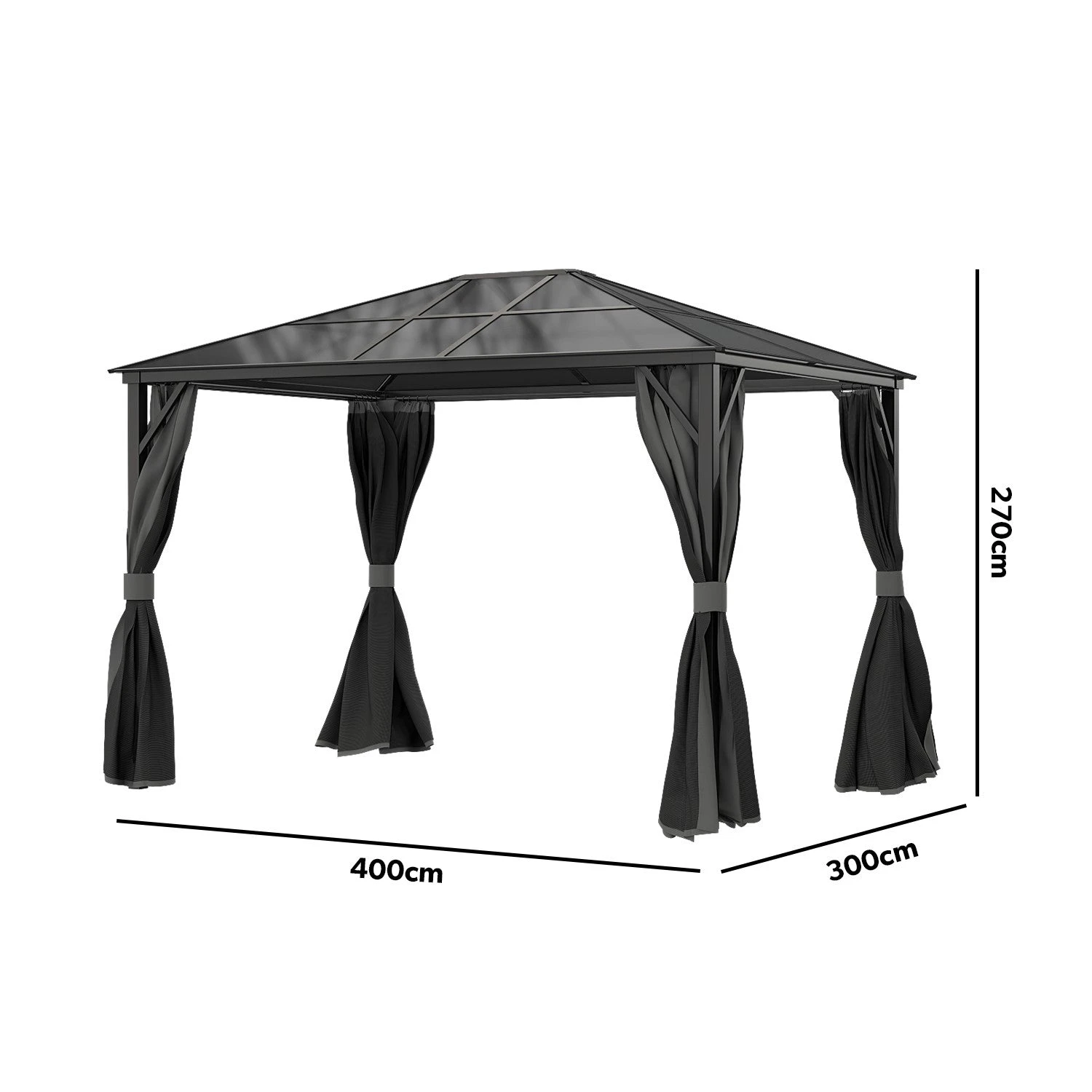 Fortrose 3x4m Black Metal Garden Gazebo With Grey Roof And Sides -Hot Tubs Sale FTR060 3 Supersize