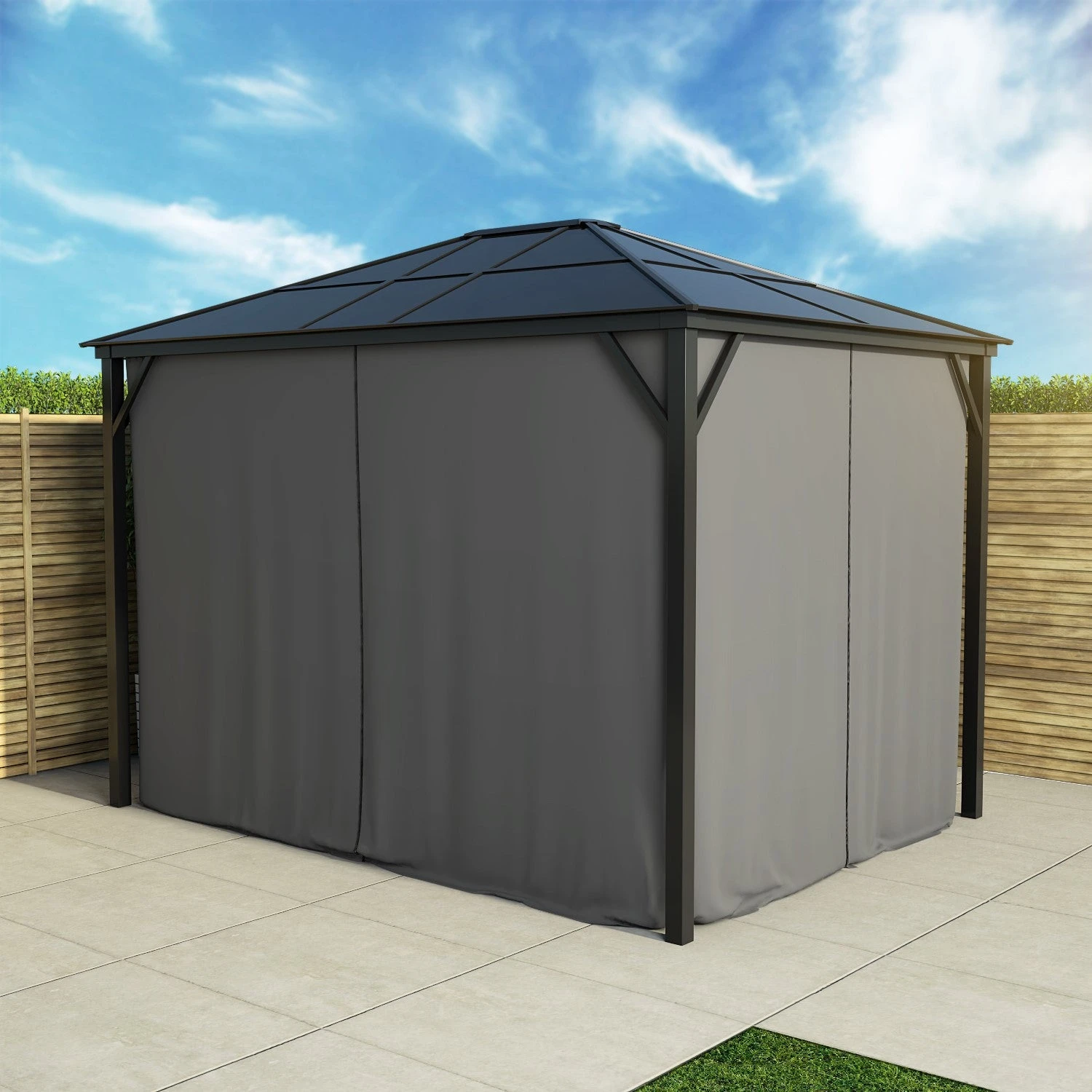 Fortrose 3x4m Black Metal Garden Gazebo With Grey Roof And Sides