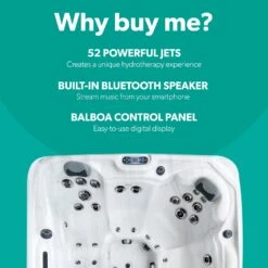 This modern single-button control panel with pre-set programs makes this hot tub user-friendly, from the jet operation and filtration requirements to heat settings and lighting ambience. Plus, there’s a pre-programmed 2-stage filtration, including a top-loading filter system. It’s also compatible with the SmartTub™ system, which enables you to monitor and control your spa from your phone; it would be ideal paired with the optional BlueWave® Music System so you can listen to your favourite tunes. – it makes a great first hot tub.