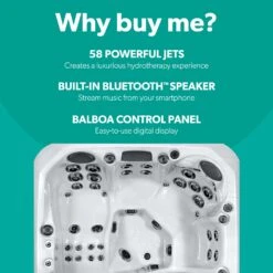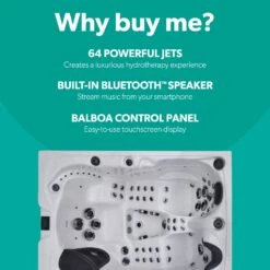 The ProTouch™ glass control panel is easy to use with touchscreen controls, and the SmartTub™ system allows you to control and monitor your hot tub from your phone. Get the tunes going with the BlueWave® stereo system, featuring premium speakers and an amplified sub-woofer for the ultimate sound experience. The ClearRay® system harnesses the cleaning power of active oxygen to ensure crystal-clear water, reducing the need for chlorine or bromine by up to 50%, and SmartSeal®2 insulation retains the spa’s heat to reduce energy costs significantly.