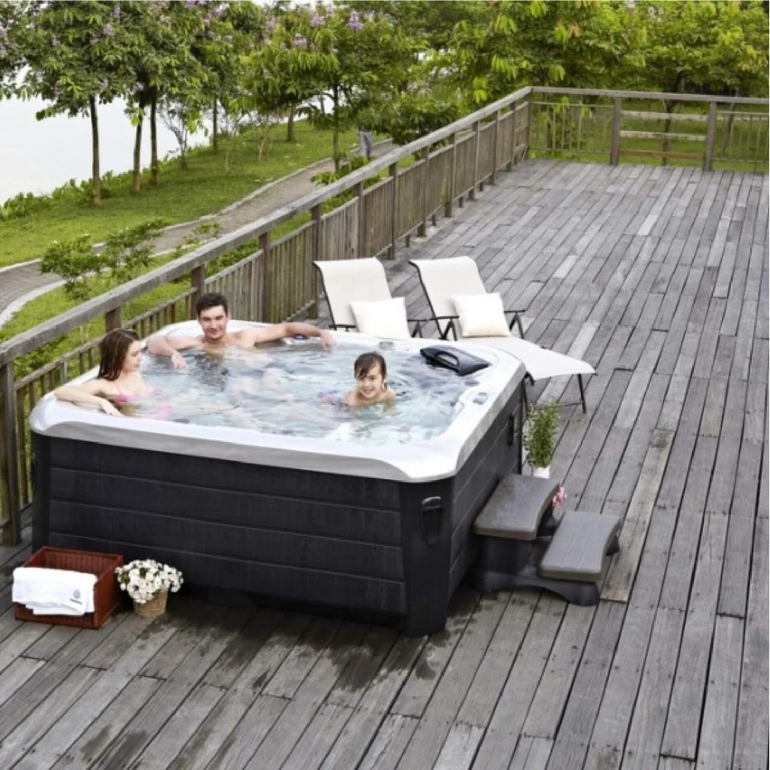 - 5-seater hot tub including 2 relaxing loungers